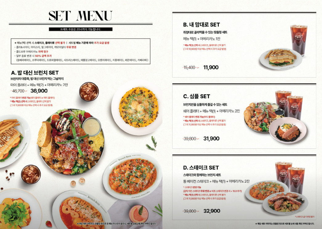 브런치빈의 메뉴판 중에 베스트 메뉴들 위주로 다양하게 주문해봤어요!