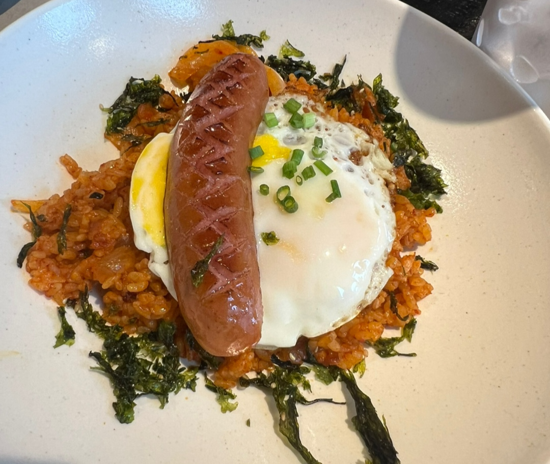 짭짤한 김치볶음밥과 부드러운 계란 프라이, 그리고 쫄깃한 소세지 조합이 정말 최고였어요.