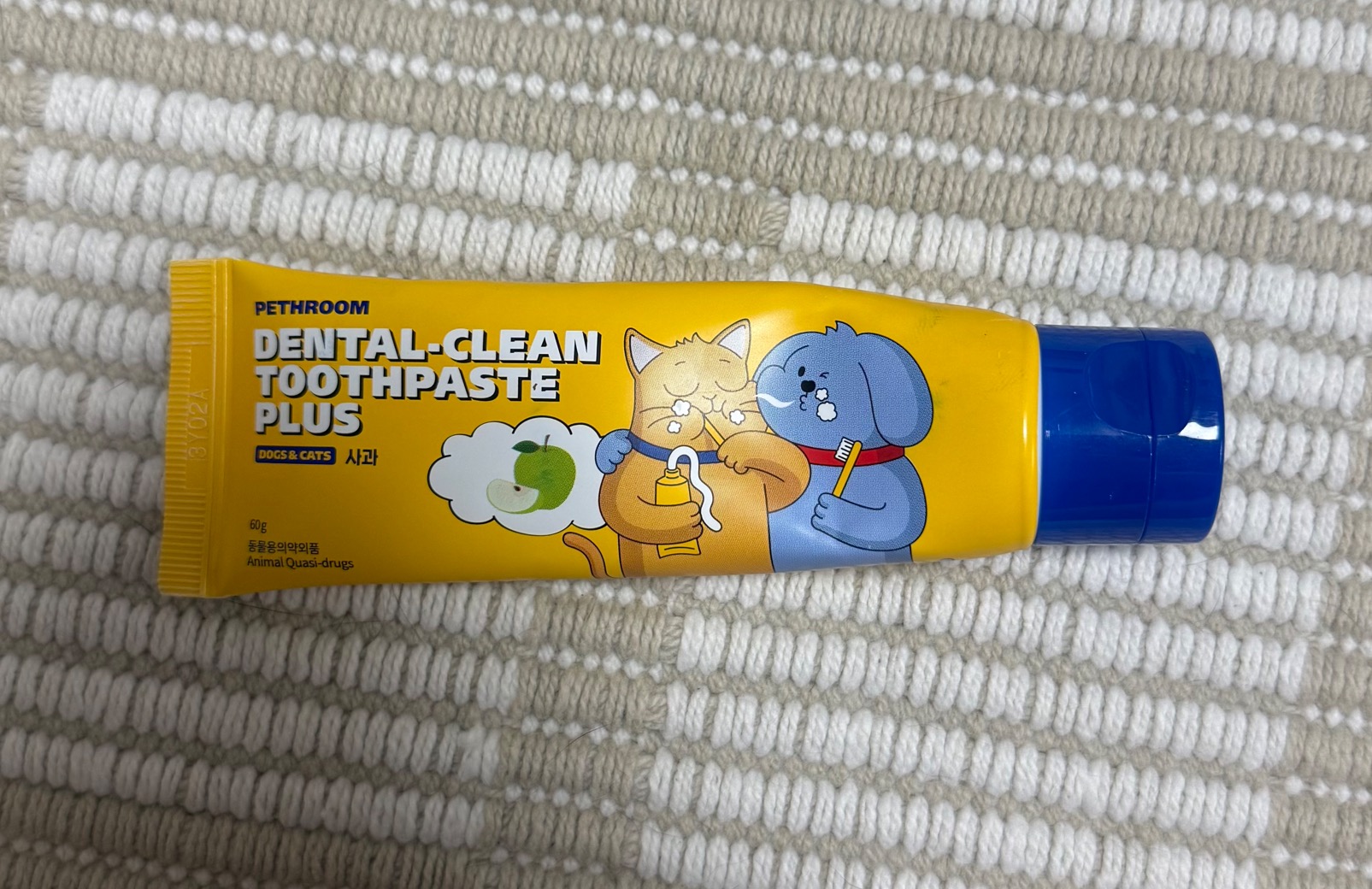 • 반려동물 전용 치약: 저희는 PETHROOM 덴탈클린 치약 플러스 사용 중이에요.